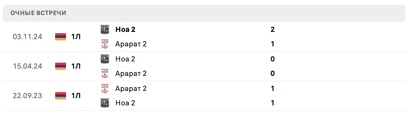 - 03.11.24: Ноа 2 2–1 Арарат 2 (победа Ноа 2)