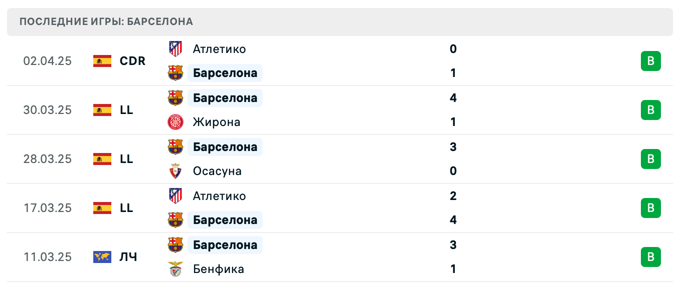 Обе команды проводят сильный отрезок, но Барселона выглядит более убедительно в атакующих действиях. Ниже анализируем форму каждой команды по последним пяти матчам.