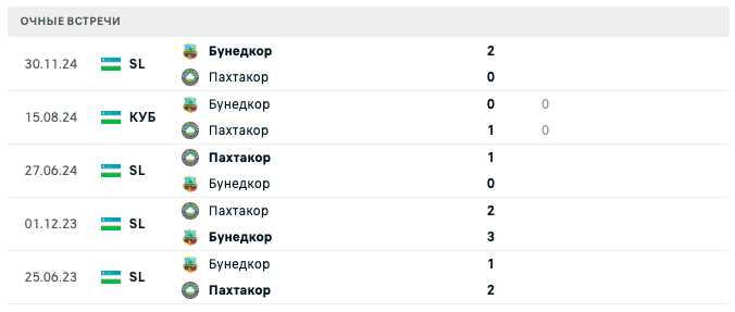 - 30.11.2024: Бунедкор – Пахтакор — 2:0