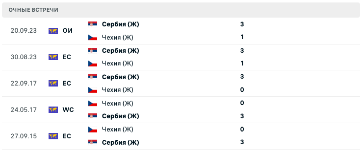История встреч между Чехией (Ж) и Сербией (Ж) не сулит оптимизма чешским болельщикам. Последние пять очных матчей завершились в пользу Сербии: