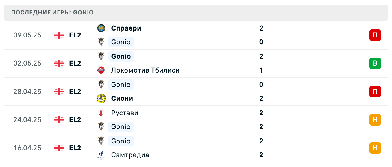 Перед матчем важно оценить форму Гонио и Динамо Тбилиси 2, а также их игровые особенности.