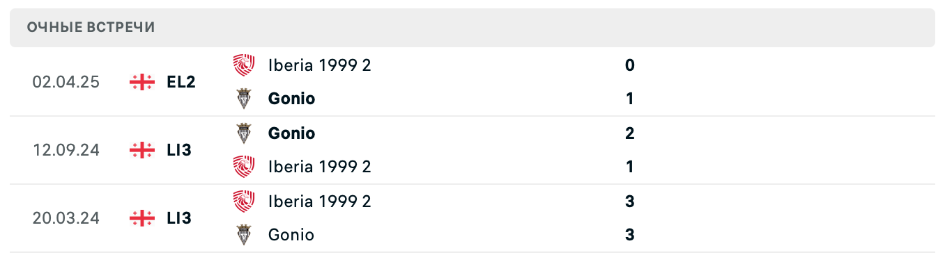 В трёх последних очных матчах между Гонио и Иберия 1999 2 были зафиксированы следующие результаты: