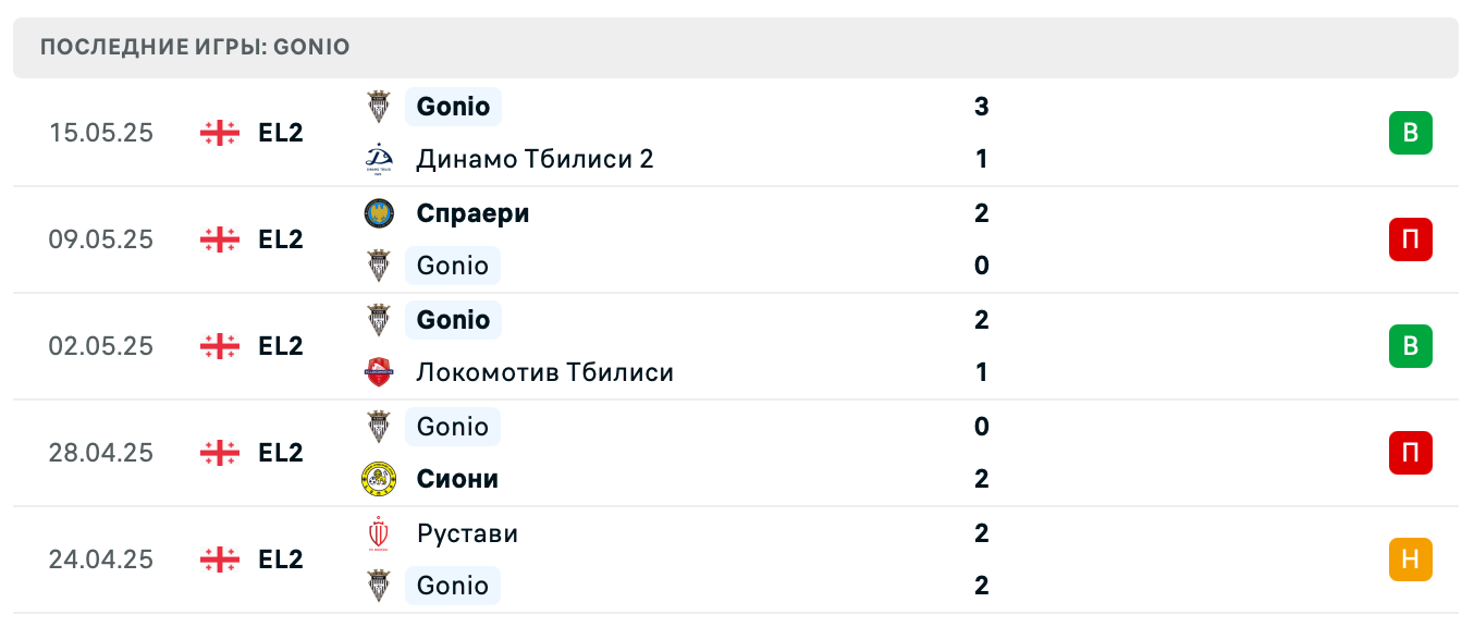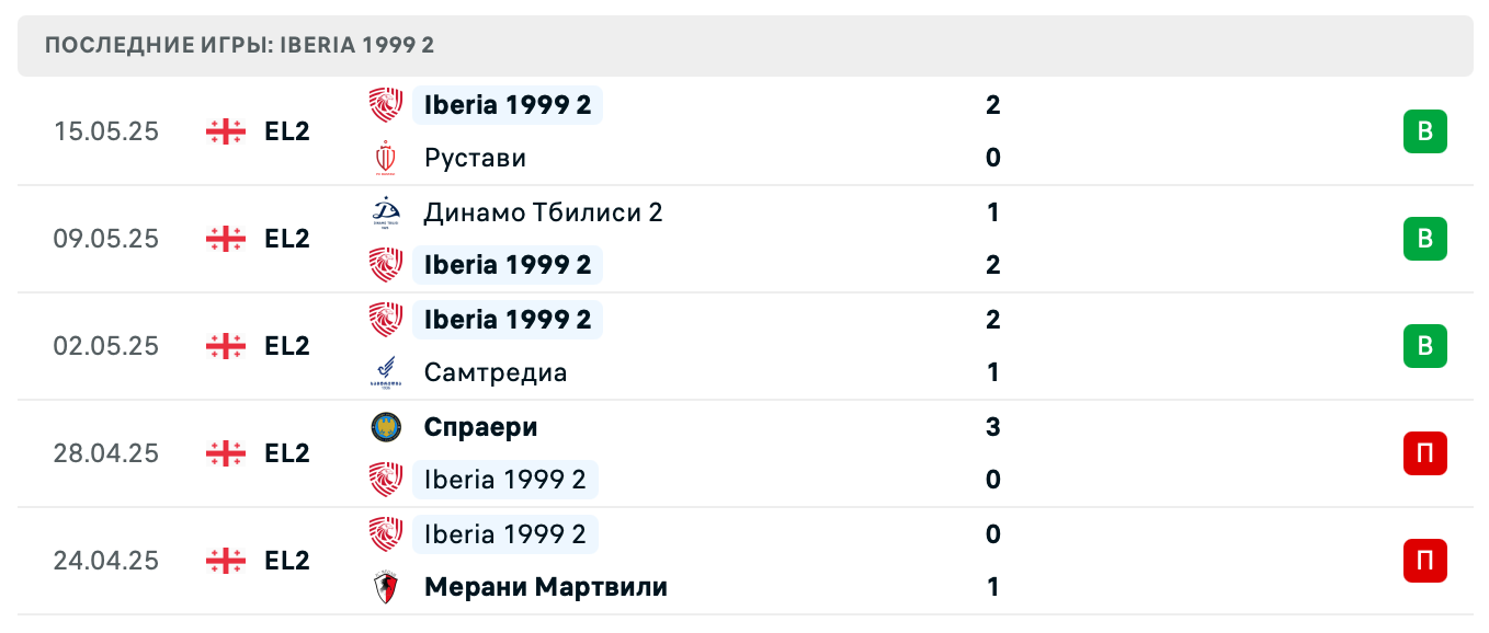 - 02.04.25: Иберия 1999 2 0–1 Гонио