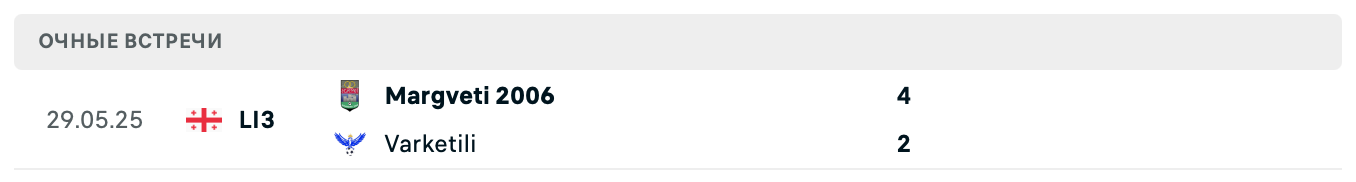 - 29.05.25: Маргвети 2006 – Варкетили 4:2 (победа)