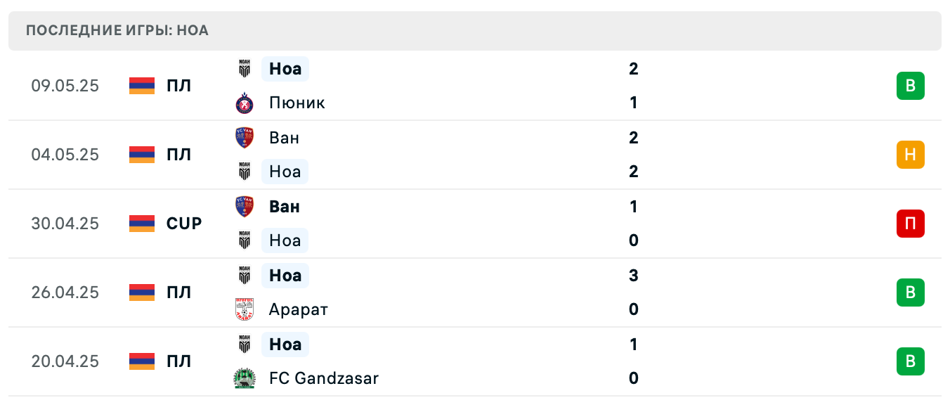 Итог — четыре победы Ноа и одна победа Арарат-Армения.