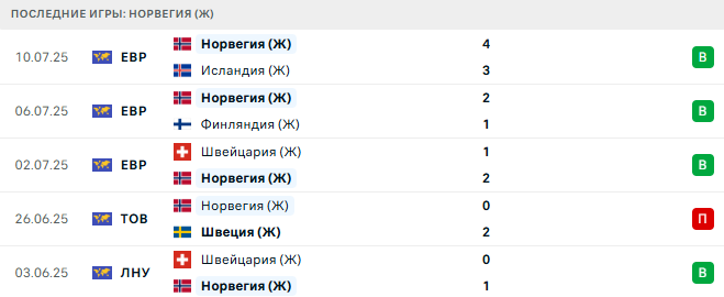 Прогноз на матч Норвегия (Ж) - Италия (Ж) 16 июля 2025: мнения экспертов, форма и состояние команд
