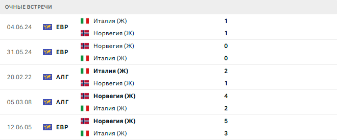 История личных встреч Норвегия (Ж) - Италия (Ж)