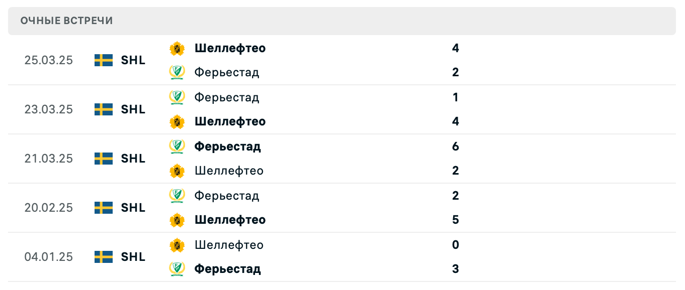 Шеллефтео набрал уверенный ход в плей-офф и имеет заметное преимущество на своей площадке. Ферьестад, несмотря на отдельные успешные игры, выглядит менее убедительно в последнее время. С высокой долей вероятности хозяева продолжат победную серию.