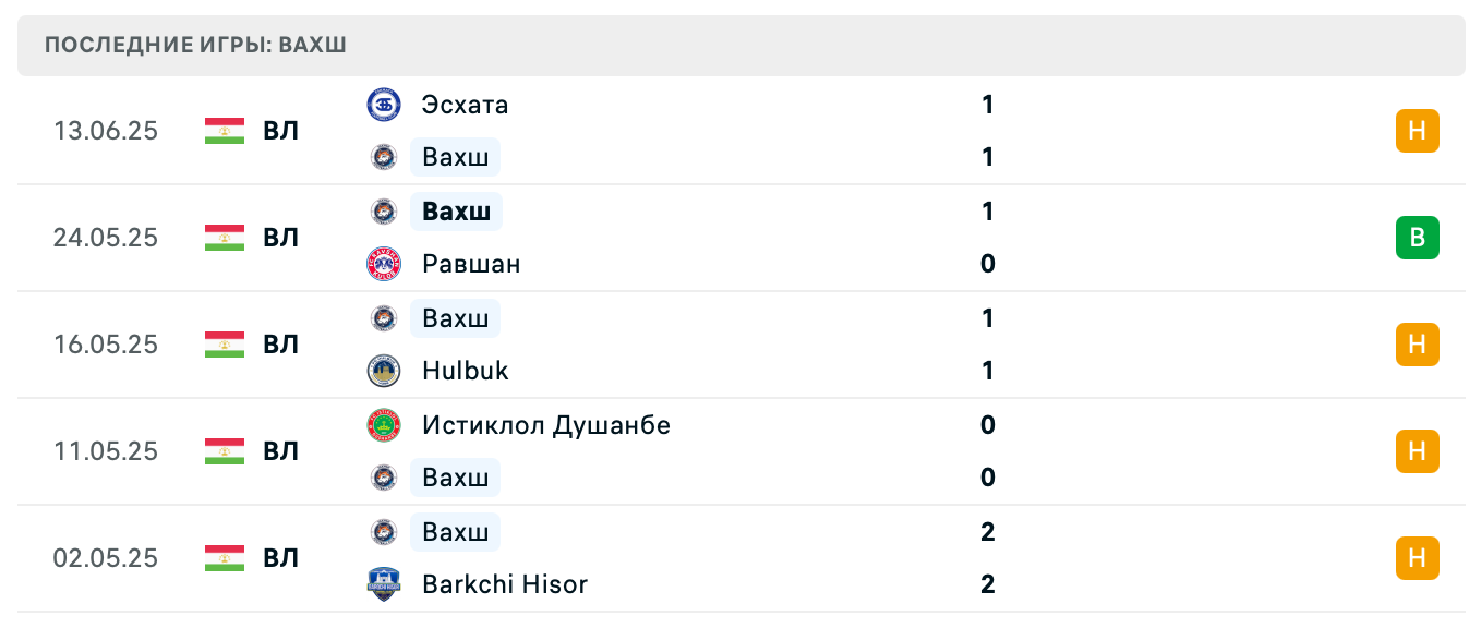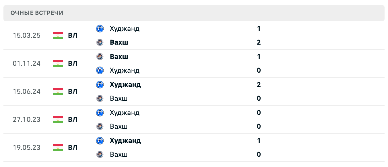 - 15.03.2025 — Худжанд 1:2 Вахш Бохтар