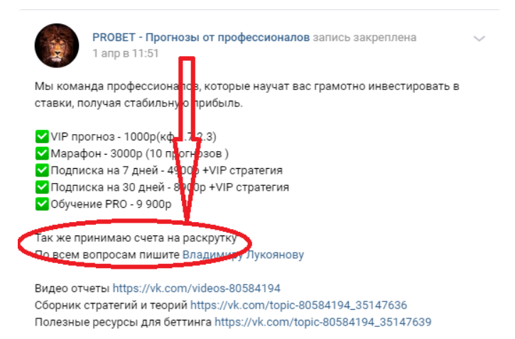 В сообществе Вконтакте ПроБет Лукоянов оказывал самые разные услуги:
