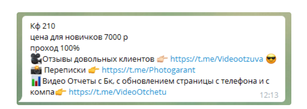 Исходя из всего, что было сказано выше, мы не рекомендуем сотрудничать с каппером, поскольку его деятельность является шаблонным примером мошенничества. Упор делается на игроков, которые потеряют холодный расчет при “возможности” увеличить банк в 200 раз. и будут готовы отправлять “аналитику” деньги за покупку инсайда.