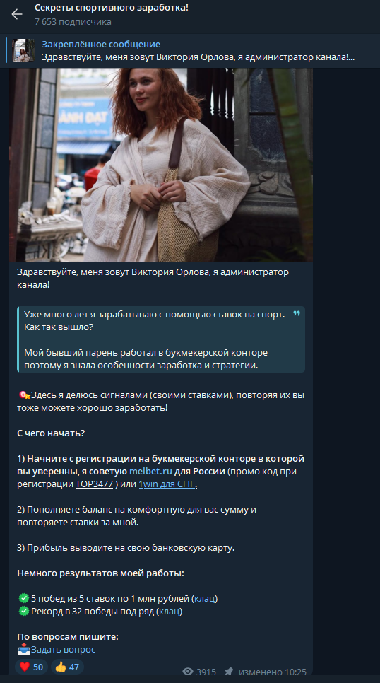 Проверка проекта в Телеграмм Секреты спортивного заработка выявила некоторые факторы, которые могут указывать на развод аудитории: