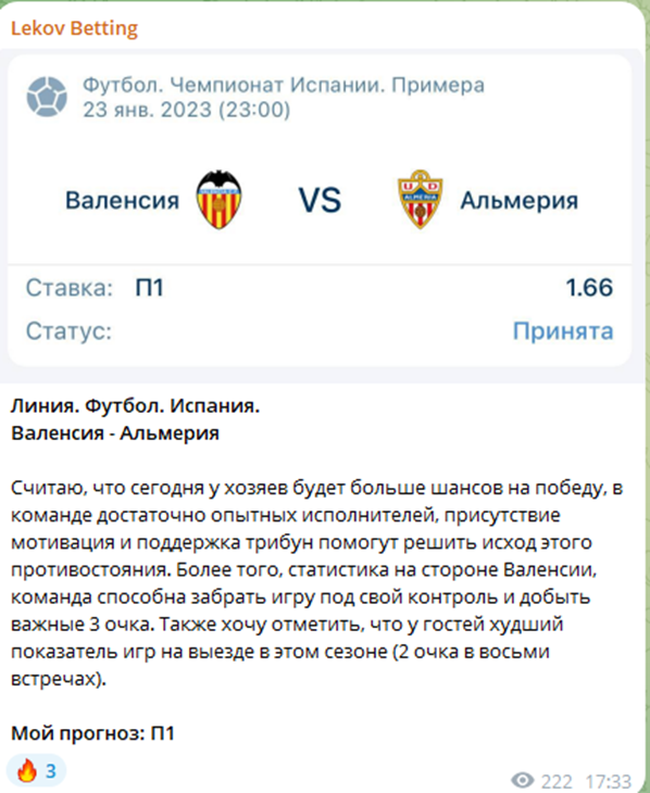 Цены на прогнозы в телеграмм-канале Lekov Betting
