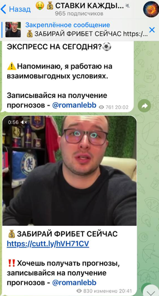Деятельность телеграмм-канала «Ставки Каждый День»