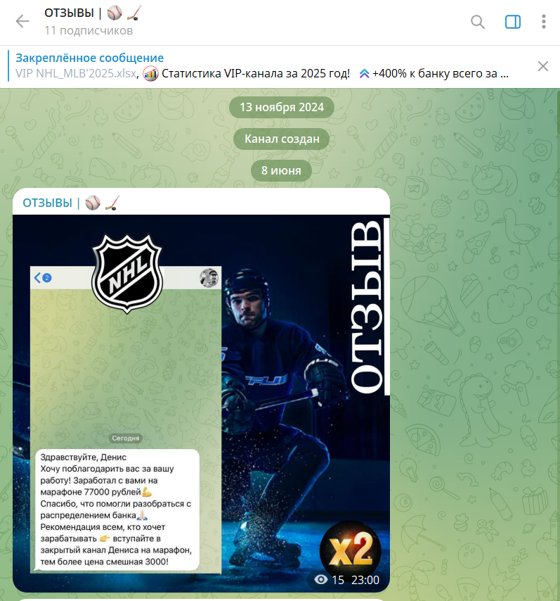 Den Strateg — каппер, которого мы не рекомендуем для сотрудничества. Он не верифицирует свои результаты, подозревается в создании фейковых отзывов. Явно не желает получать объективную обратную связь от подписчиков, которых периодически сам и накручивает.