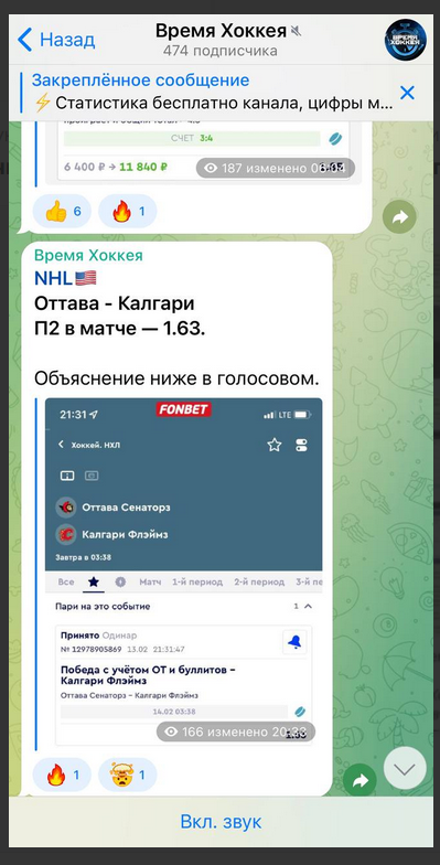 Мы изучили телеграмм-канал Время Хоккея и можем отметить, что в работе прогнозиста есть особенности: