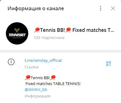Деятельность телеграмм канала Tennis BB! Fixed matches TABLE TENNIS! От проекта Win Day