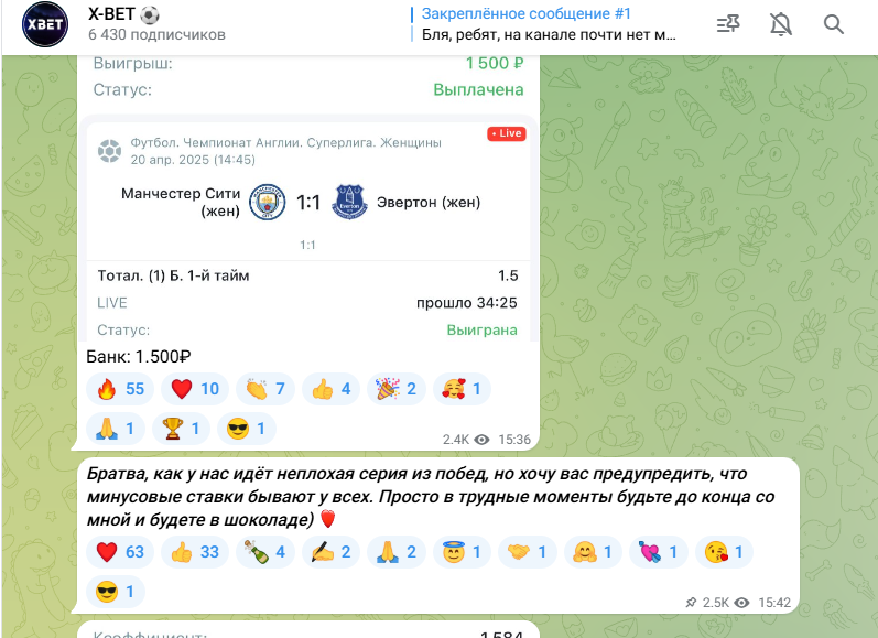 Деятельность Телеграмм канала X BET