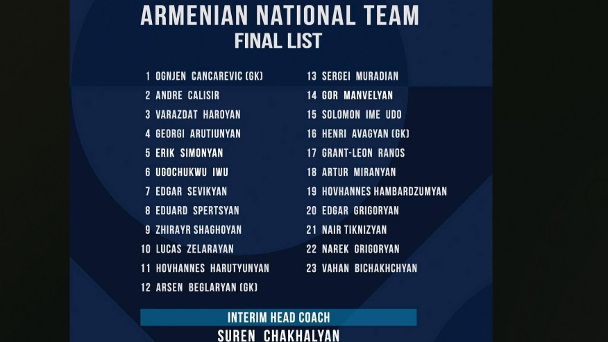 Опубликована окончательная заявка сборной Армении Была обнародована финальная заявка национальной команды Армении …
