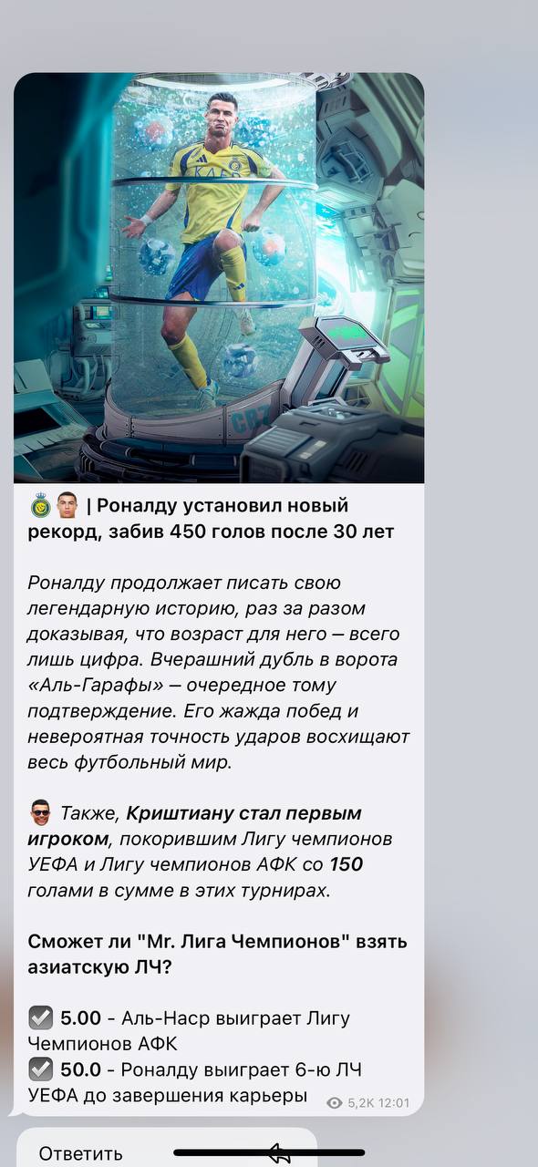 Особенно нашей команде понравились ставки на игроков. Видно что это авторские посты, которые составлены на актуальные темы.