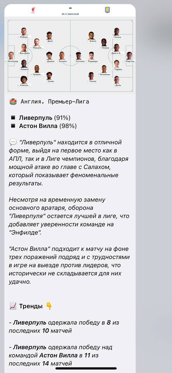 Канал можно назвать дневником, помимо стандартных прогнозов, админ ежедневно собирает информацию по перспективным матчам, делится аналитикой команд и отдельных игроков, освещает громкие новости футбола. В целом за каналом приятно следить, даже если собираешься ставить, а просто нравится футбол.