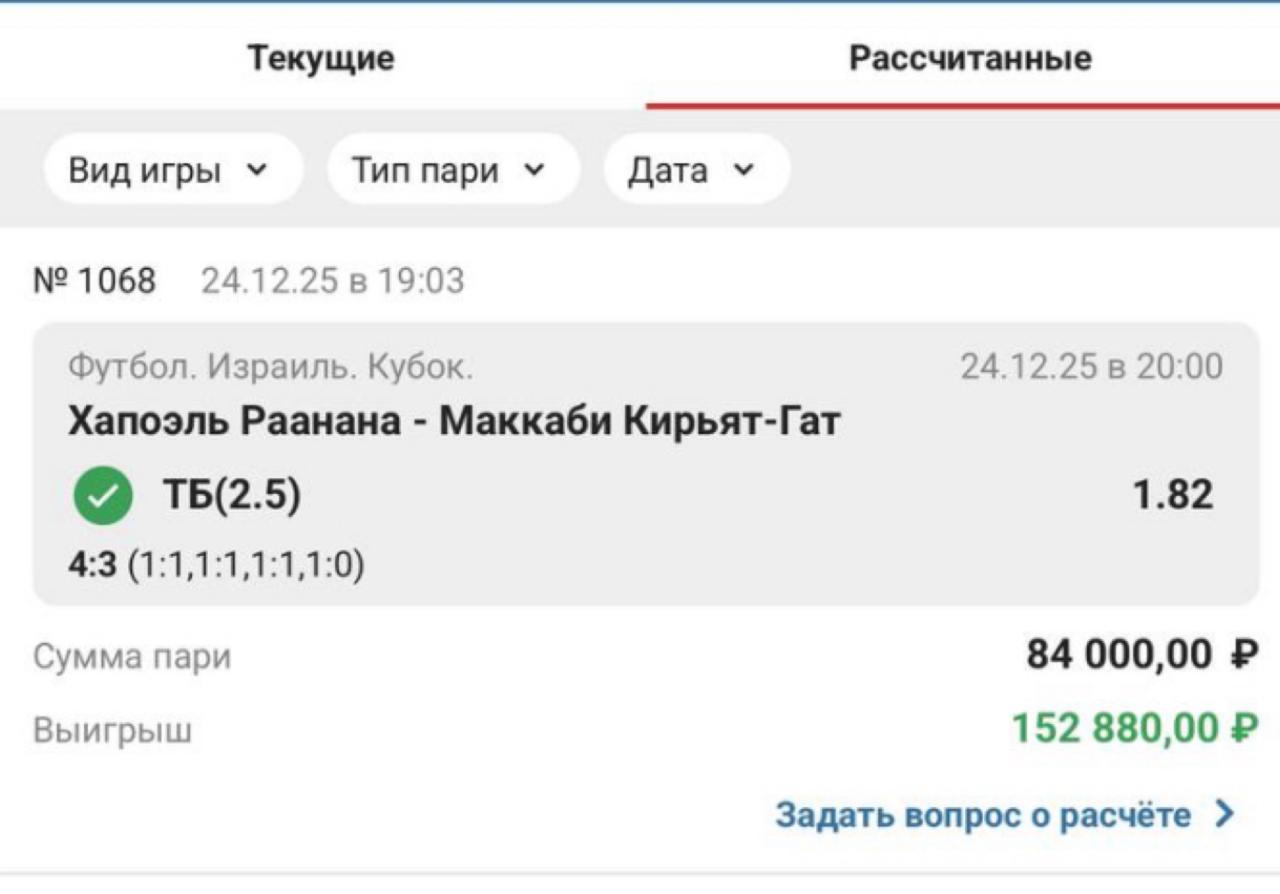 Смотри, я брал последний матч на Хапоэль Раанана – Маккаби Кирьят-Гат, и вот, что у меня получилось заработать, отнимай сумму ставки и покупку информации - вот тебе и прибыль, я считаю, что прям ахуенная, но это мое мнение.