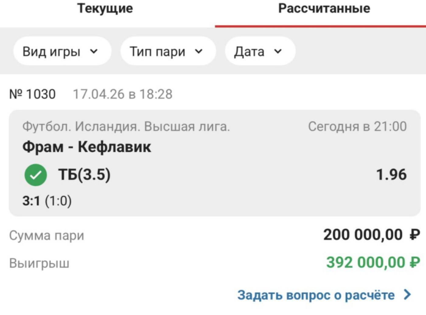 Прикиньте, сначала думал что ставка не зашла. Перепутал матч по времени, психовал полвечера. Потом случайно глянул историю, а там выигрыш стоит. Никак не мог поверить. Вот скрин, эмоции зашкаливали