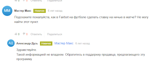 Комментарии о проекте Fairbot в основном положительные или нейтральные. Пользователи отмечают, что программа полностью легальна. И она не вызывает блокировок со стороны Betfair. Жалобы связаны в основном с отсутствием дополнительных функций, таких как анализ статистики или поддержка в мессенджерах.